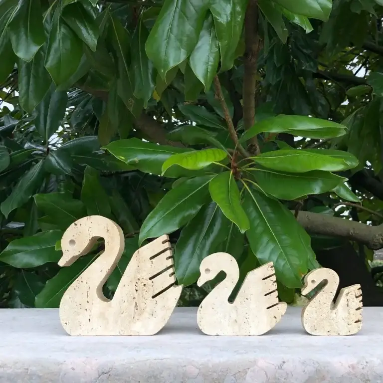 Quando riordinando le ‘secrete stanze’ della Villa trovi piacevoli sorprese. La famigliola di cigni in travertino è disegnata a quattro mani da Enzo Mari ed