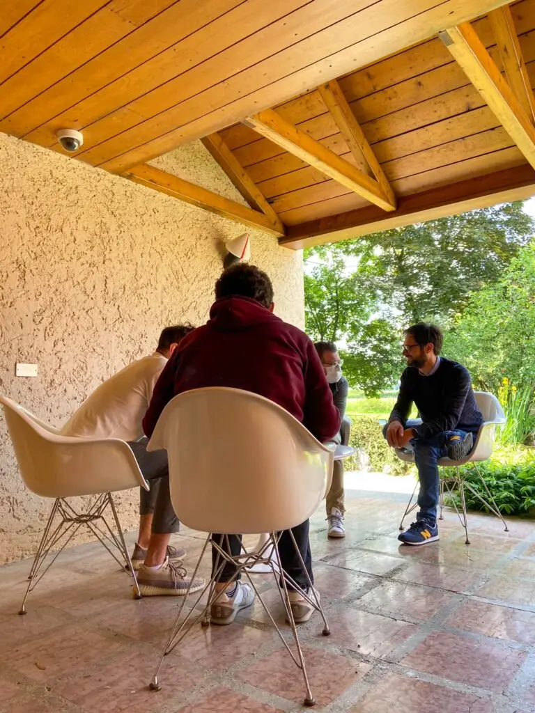Giornata Dayteam per il team di dirigenti di un’azienda di Web Marketing. Tavolo da lavoro, proiettore e lavagna ma anche le passeggiate nel parco, il pranzo con gli stuzzichi, i vari breaks ed infine l’aperitivo serale con Angus, caponatina e baccalà. Il founder lo abbiamo beccato in call a cavalcioni di un pezzo Magis in mezzo al nulla. Ed ha fatto bene. Questo è lo spirito di Villa Bornello quando dedicata agli eventi aziendali.