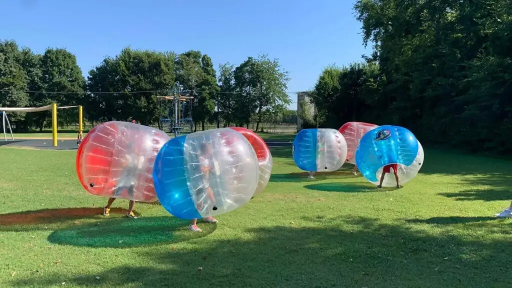 Le indossi e sei invulnerabile (o quasi :-)). Giochi a calcio fra goals e capitomboli spassosi per diversi tempi sfidando le squadre avversarie. Ci sono le porte, l’arbitro, le regole, il pubblico ma soprattutto ci sono le colorate bubbles e c’è la natura di Villa Bornello, a pochi chilometri da Treviso. Immaginiamo una giornata tipo per un’azienda desiderosa di passare del tempo in villa per il networking, la formazione ma anche per l’aspetto ludico e di ‘squadra’. Aperitivo di welcome sul piano del laghetto per poi passare ad un momento di lavoro/confronto oppure presentazione progetto. Alla fine si è pronti per le bubbles. Si scende in campo e via con partite singole o tornei.