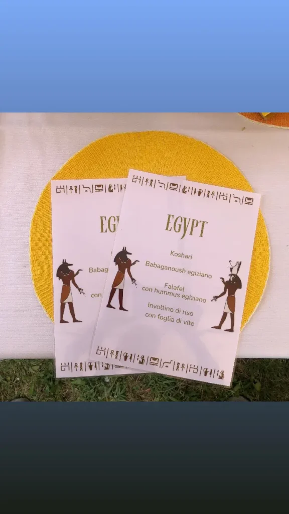 Un matrimonio easy e globetrotter con una pedana al centro dove, imbracciata la chitarra gli ospiti potevano esibirsi, una seconda fila di quattro diverse cucine, (egiziana, giapponese, italiana e messicana, oltre ai beverages) e per ciascuna di queste un’ambientazione ad hoc rispettivamente con; pouff in pelle e tappeti mediorientali; lampade di carta, tatami e tavolini bassi dove inginocchiarsi; una vera osteria delle nostre con tavolacci in legno ed infine l’angolo Mexico con catenarie fra gli alberi, sombreri, chili, guacamole e birra Corona!